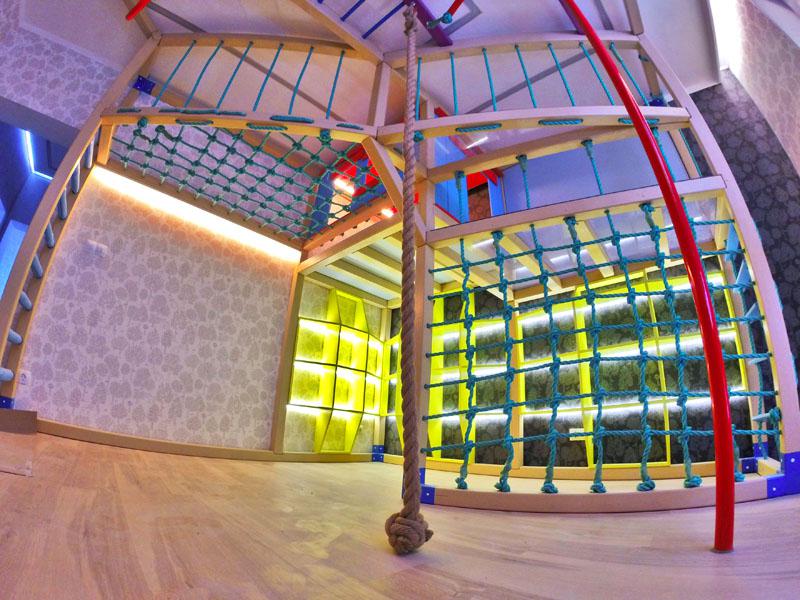 Детские площадки для квартиры могут быть похожи на лаконичный гимнастический зал или вольер для мартышек… Если надо, то потолок будет небом, а паркет газоном. Воображайте дорогие взрослые, оглядывая пока еще пустую комнату, предназначенную для детской. Полистайте журналы, загляните в интернет, посетите зоопарк… Потом звоните нам. Уж мы то развернемся на славу.